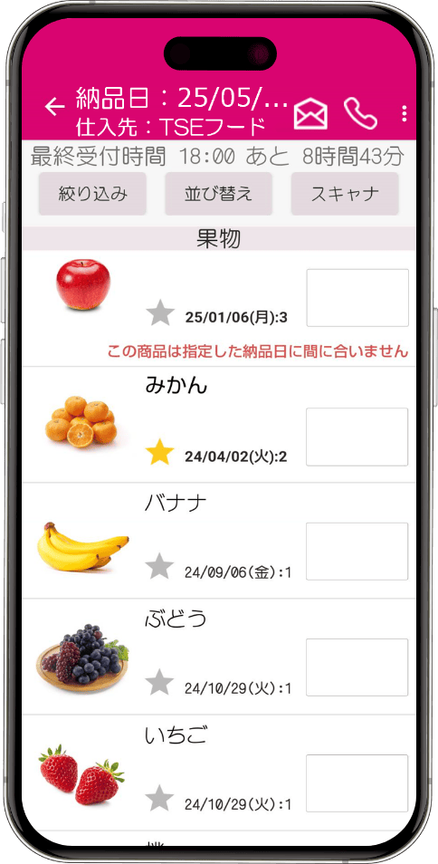 (コスト負担はモバイル通信の費用だけ) - ID・パスワードでログイン、発注商品の数量を入力して送信するだけ